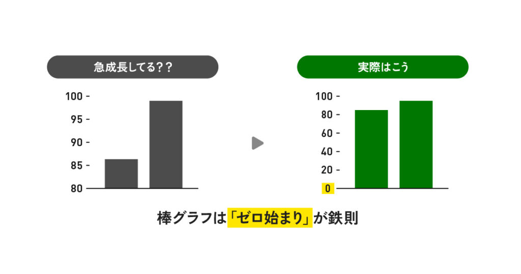 数字を強調したいときほど、グラフの見せ方には慎重になるべきです。