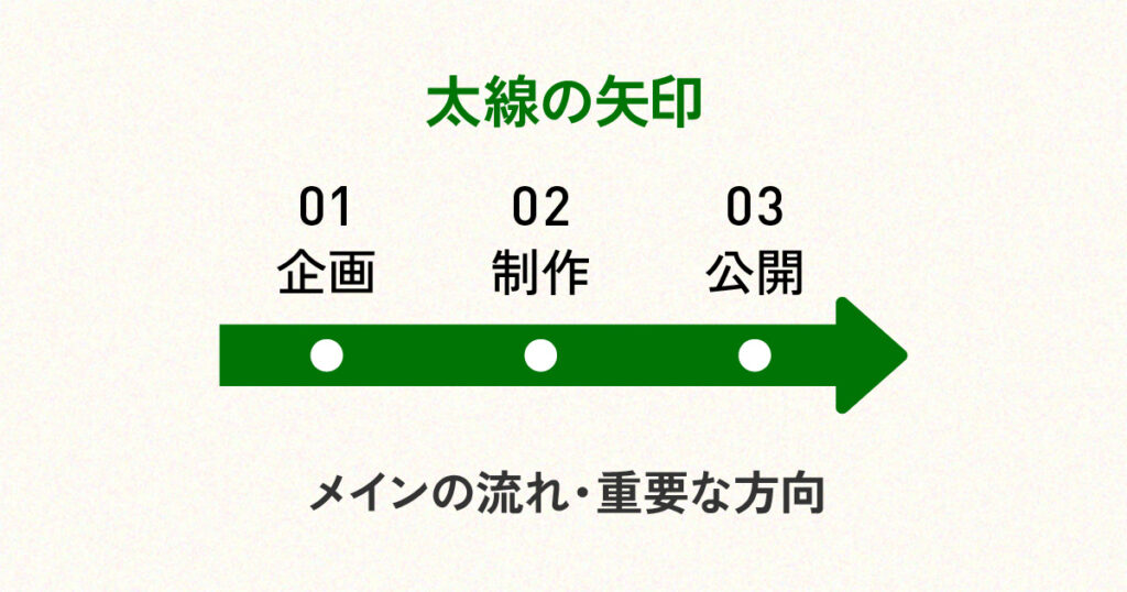 太い矢印は、主軸となる流れや重要な方向を示すときに使います。