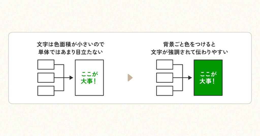 - 文字 × 背景色 = まとまりとして視線を引きつける