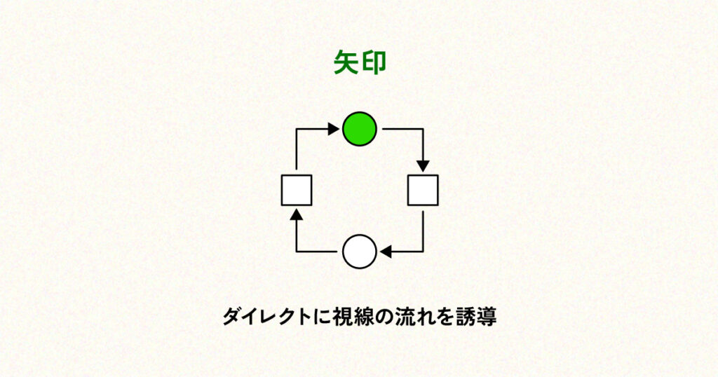 矢印は、視線の流れを最も直接的に示せる視覚要素です。