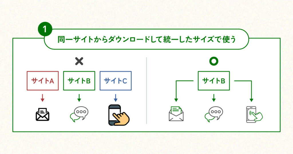 ① 同じサイトからダウンロードして、統一したサイズで使う